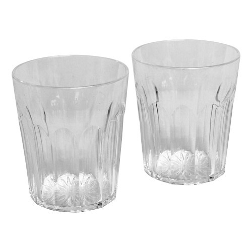 Dieses stoß- und kratzfeste Set aus 2 Gläsern für Wasser oder Orangeade ist ideal für Ihre Ausflüge mit dem Wohnmobil, Wohnwagen und Transporter.