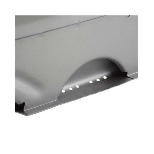 Heckschürze aus Blech für eine lange Motorhaube. Originalgetreue Nachbildung, zeichnet sich durch seine Fertigungsqualität aus, insbesondere bei den Auspuffausschnitten, die die genauen Maße wiedergeben, keine Auspuffrohre mehr, die sich berühren.