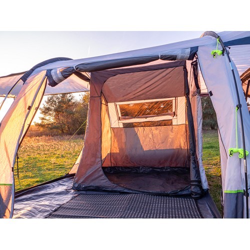 Dieses Modul bietet eine komfortable Breite (75 cm) und Tiefe (110 cm), um sperrige Gegenstände zu verstauen, und eine variable Höhe (20 bis 38 cm). Die hochdichten Faserplatten sorgen für eine gute Stabilität. Der Stauraum kann in drei Teile unterteilt werden. Befestigung am Rahmen und an den Latten des Bettes mit einem Gurt.