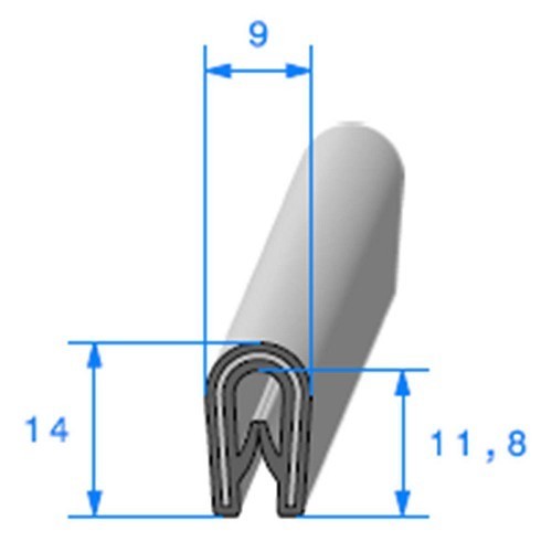 Inkl. MwSt.Schwarze Dichtung mit Metallarmierung und mit einer PVC-Klemme, um die Dichtung besser zu halten.