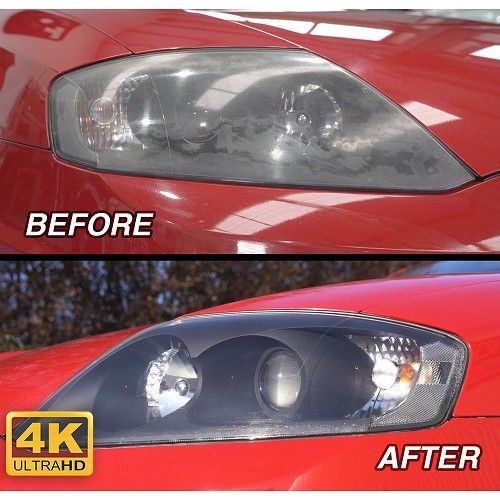 Mit der Zeit werden die Scheinwerfer matt und die Polycarbonatoberfläche wird durch äußere klimatische Angriffe wie Sonnenstrahlen (UV), in der Waschanlage verwendete Produkte oder Ähnliches besc...