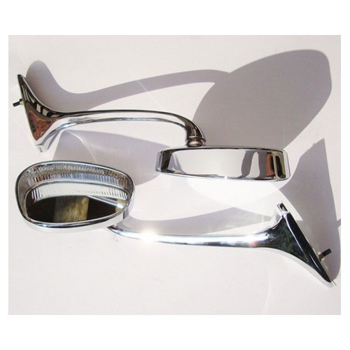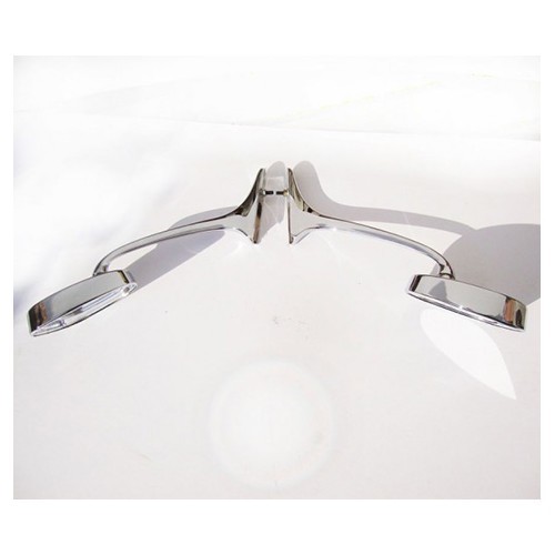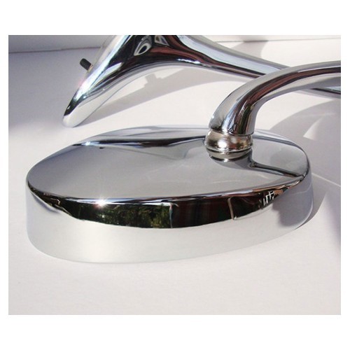 Spiegelpaar Typ Schwanenhals, Modell mit einer Sonnenblende, die den Spiegel umgibt. Sehr schöne Qualität der verchromten Oberfläche!