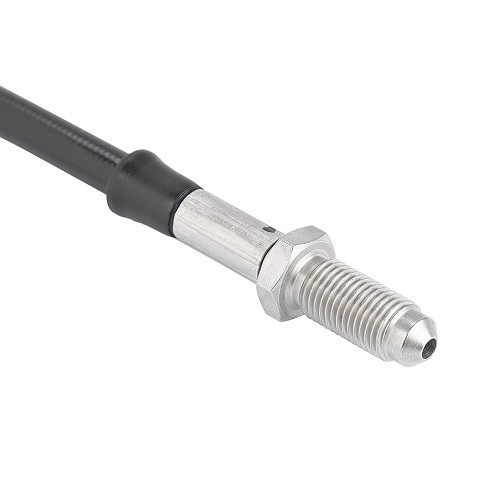 Diese geflochtenen Metallschläuche der Marke GOODRIDGE bieten eine hohe Beständigkeit gegen den Druck der Bremsflüssigkeit und hohe Temperaturen. Diese aus dem Rennsport stammende Luftfahrttechnik verhindert den "Schlapppedal-Effekt" der Originalschläuche.