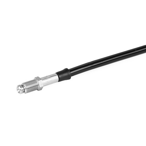 Diese geflochtenen Metallschläuche der Marke GOODRIDGE bieten eine hohe Beständigkeit gegen den Druck der Bremsflüssigkeit und hohe Temperaturen. Diese aus dem Rennsport stammende Luftfahrttechnik verhindert den "Schlapppedal-Effekt" der Originalschläuche.