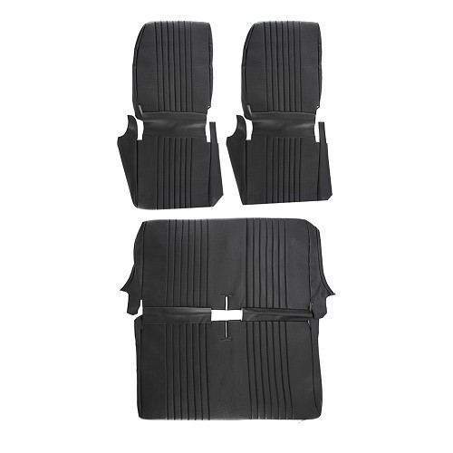 These asymmetrical seat covers for 2cv and Dyane saloons are made of black perforated vinyl.