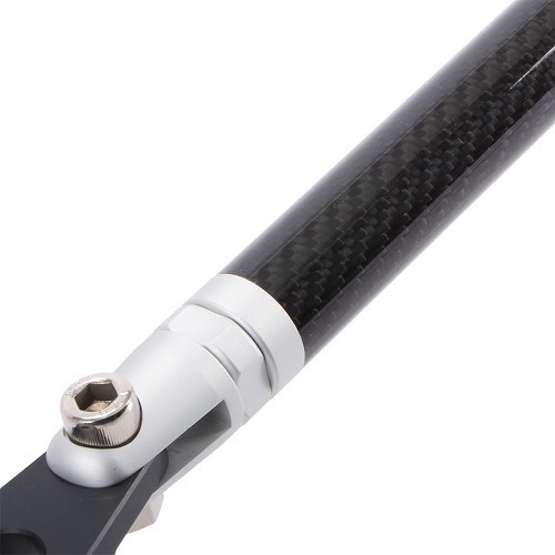 It has steel support cut in the mass and an adjustable carbon bar. Offering more rigidity in compression and torsion than steel and aluminum, this carbon version is also lightweight.