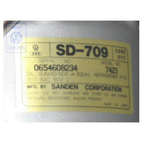 Compressor for air-conditiong with electro-magnetic coupling SD 709 (for coolant: R12) for Golf Mk2, Passat B3, Corrado and Passat B4. Also suitable for Jetta Mk2.