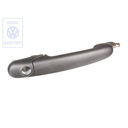 Door handle for Volkswagen Caddy (1996 - 2003). Fits both sides, comes without locking cylinder. Color: black.