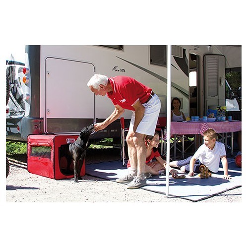 The CARRY DOG Fiamma folding dog house is the ideal refuge for your dog. Foldable and easy to transport , it's the ideal equipment for your camper van or caravan. This sturdy kennel offers great comfort for your dog: integrated mosquito net for insect protection and ventilation .