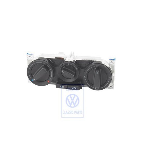 Fresh air and heater controls for vehicles with manuallyregulated air conditioner in a Volkswagen Passat made from1997 to 2000. Finished in the color satin black. Lighting:green. Chassis number from 3B-V-000 001