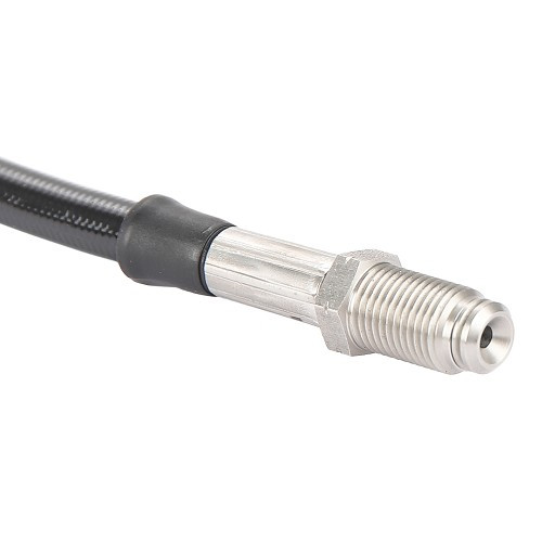 These GOODRIDGE metal braided hoses withstand the pressure of the brake fluid and high temperatures. This aviation technology is derived from motor sport and avoids the "soft pedal" effectof the original hoses.