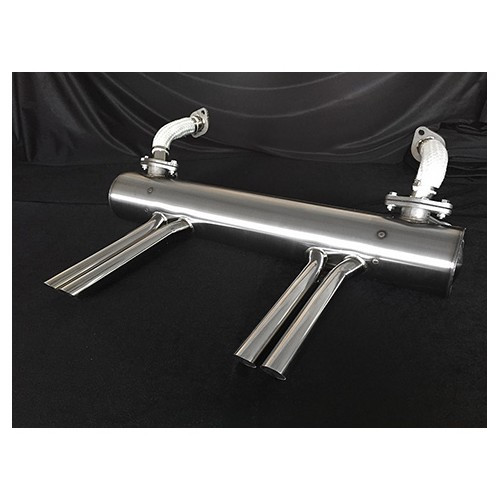 100% stainless-steel, 4-outlet, high-cane double pots on Type 1 motors. Eliminates heater boxes. Offset for single or twin carburetors.