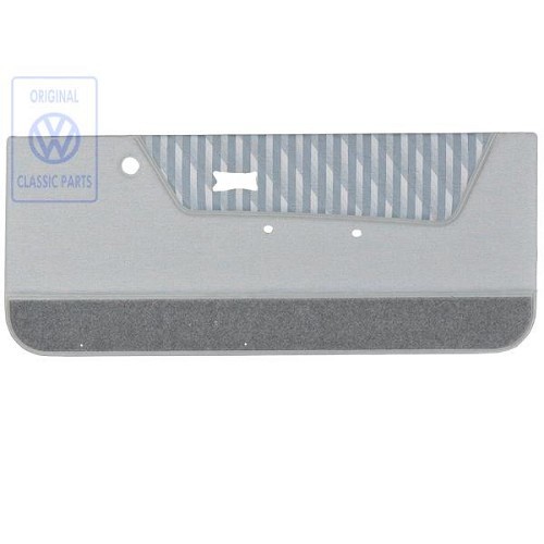 Right door trim-panel for a Golf Mk1 Convertible. Thisdove-gray colored part can be used on models made from 1983to 1993.
