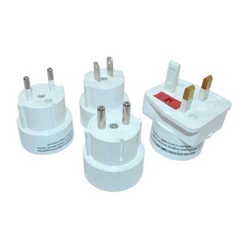 Assortment of adapters with European, American, African and English plugs. Sold without earth connection.