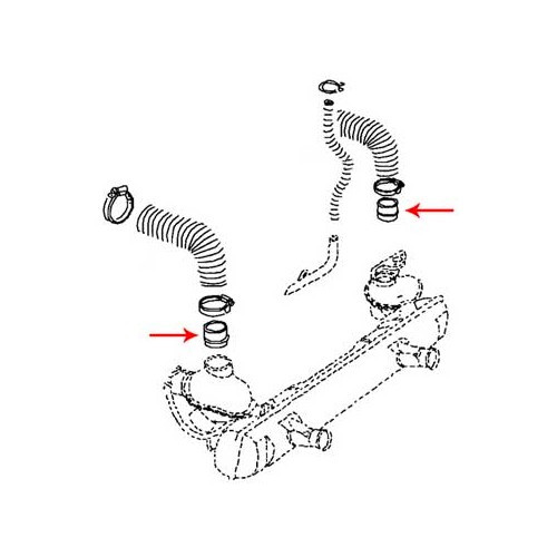 Manguito de aire izquierdo entre la caja de calefacción y la baquelita en el chasis de Combi Split Brazil (1957-1975)