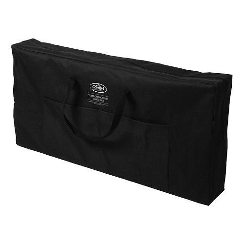 Descubra la comodidad de una cocina ordenada en el exterior de su autocaravana o caravana con este atractivo y funcional mueble de cocina. La cocina de camping BAMBOO QUICK es justo lo que necesita! Con sus 2 armarios, ofrece una gran capacidad de almacenamiento. Listo para usar en pocos segundos gracias al práctico sistema de montaje rápido. Está equipada con una encimera de bambú, un ligero armazón de aluminio, un resistente revestimiento de poliéster Oxford y estantes de paneles de MDF resistentes. El parabrisas protege contra el viento y las salpicaduras. Tiene espacio de sobra bajo ¡el toldo o la persiana!