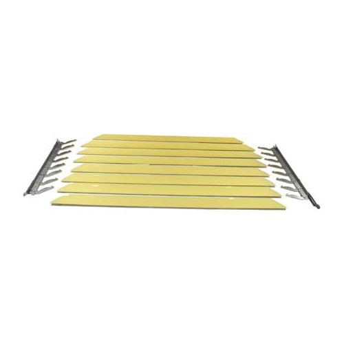 Parasol de lamas para la luneta trasera llamado"Jalousie". Una bella reproducción en aluminio de un accesorio de época para un look muy Vintage, y protección interior contra el sol.