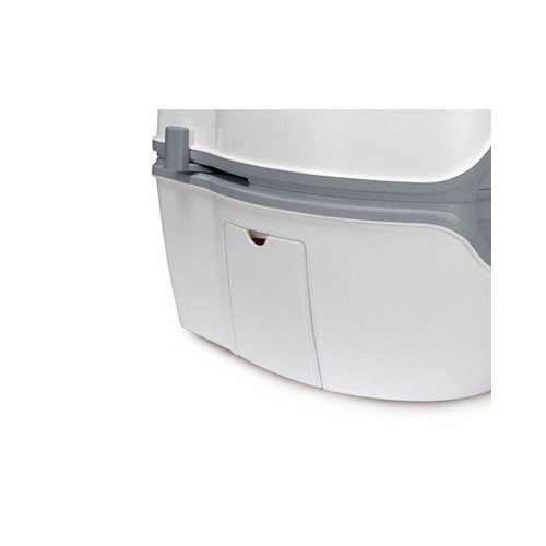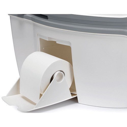 El práctico portarrollos de papel higiénico y el asa integrada en el depósito de residuos lo convierten en un inodoro práctico para utilizar allá donde vaya.