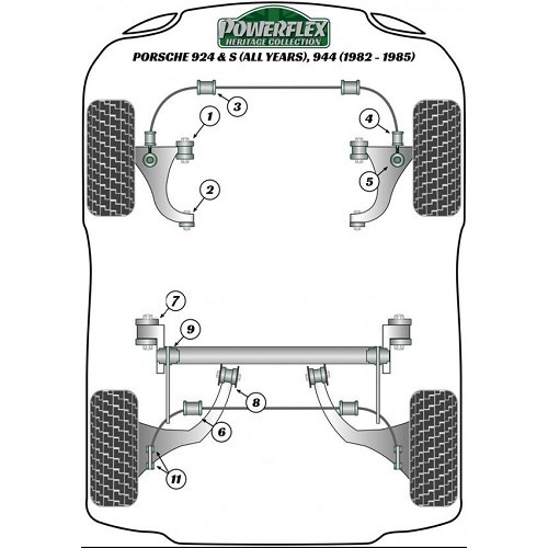 Silenblocs de enlaces de barra estabilizadora trasera POWERFLEX HERITAGE for Porsche 924 (1976-1988) - N°11