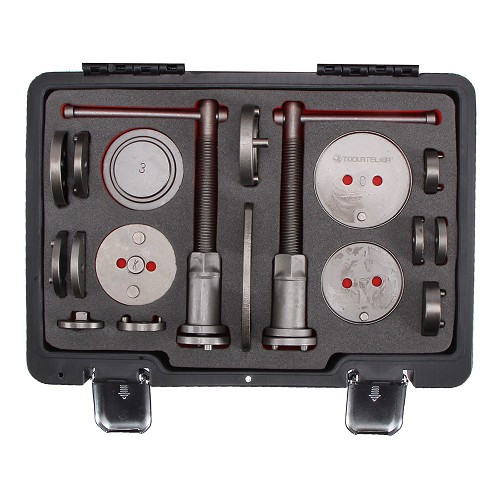 Ce kit d'outils TOOLATELIER permet de repousser les pistons des étriers de frein lors du remplacement des disques et/ou des plaquettes.