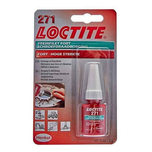 Le frein filet fort LOCTITE 271 est une colle frein filet de couleur rouge avec une résistance élevée particulièrement adaptée au freinage permanent et à l'étanchéité des assemblages filetés.