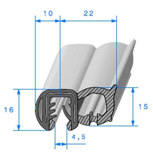 Joint de porte à armature métallique 22,8 x 13,3 mm.