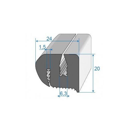 Joint de pare brise noir en caoutchouc 24 x 20 mm