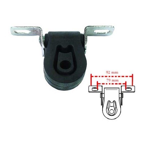 Silentbloc d'échappement en caoutchouc avec support permettant de le fixer.