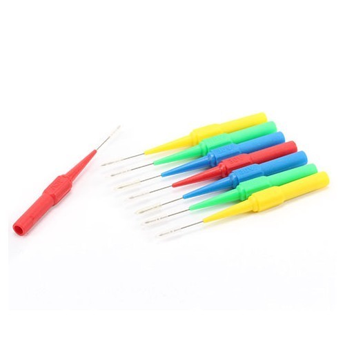 - 5 pinces crocodiles, douille 4 mm rouge, noir, jaune, vert, bleu- 5 aiguilles de test, conception droite, douille de 4 mm, rouge, noir, jaune, vert, bleu- 5 aiguilles de test, coudées à 45° douille de 4 mm, rouge, noir, jaune, vert, bleu- 5 aiguilles de test, coudées à 90° douille de 4 mm, rouge, noir, jaune, vert, bleu- 5 sondes de test (perforation de câble), douille de 4 mm, rouge, noir, jaune, vert, bleu- 5 câbles de mesure avec fiche mâle 4 mm sur pince crocodile, longueur 104 cm, rouge, noir, jaune, vert, bleu
