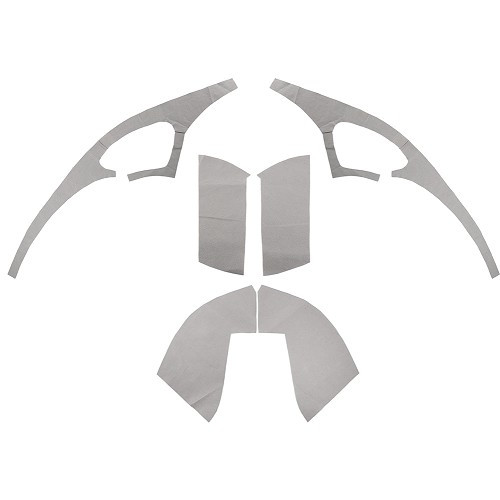 Ce jeu de feutrines gris clair est compatible avec les 2CV berlines à vitres de custode à partir d'avril 1965.
