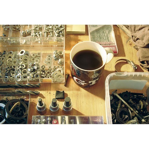 TTCD'une contenance de 370ml, cette grande tasse à café aux motifs GTi arbore également le visuel de la Golf 1 sous une forme dessinée.