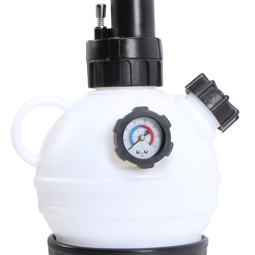 Appareil très pratique pour vidanger seul son circuit de freinage. On peut mettre jusqu’à 2 litres de liquide de freins, pas besoin de faire le niveau, il suffit de remettre un peu de pression après chaque roue.