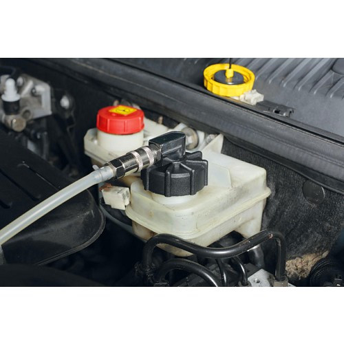 un bouchon de reservoir de liquide avec une sortie à l'équerre (pour des voitures modernes ou on a juste la place de devisser le bouchon) serait utile pour pouvoir travailler sur cerrtaines voitures. Installer un raccord tournant équerre à la place du raccord droit en sortie de bouchon.