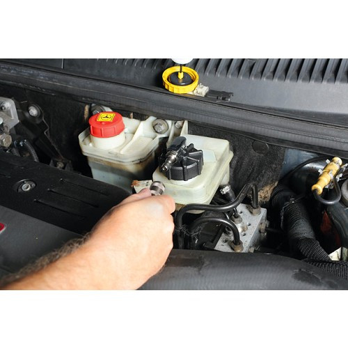TTCCe dispositif de purge de frein manuelle de marque TOOLATELIER est conçu pour une utilisation avec la plupart des réservoirs de maître-cylindres.