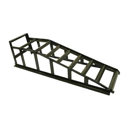 Rampe de levage avec une grande largeur qui permet de lever une voiture, même avec des pneus larges (4x4, camionnette ...) .