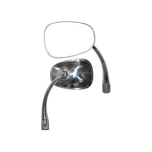 Rétroviseur côté gauche. Bras chromé, tête en inox poli.