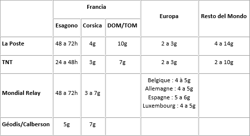 Per le consegne in Francia metropolitana, il termine è specificato di seguito.