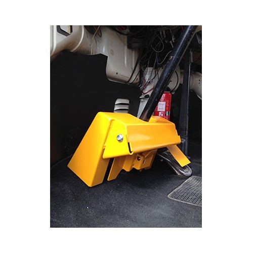 Il Safe T pedal è un sistema antifurto estremamente efficace a chiave che blocca la pedaliera. Il principio: un solido zoccolo in metallo blindato di uno spessore di 4 mm blocca meccanicamente l'utilizzo dei pedali, rendendo impossibile qualsiasi furto guidando (inserire una marcia prima di installarlo). Posizionamento molto semplice e rapido. Il colore giallo del "Safe T pedal", ben visibile dal vetro è dissuasivo, cosa che può evitare gravi danni esterni!
