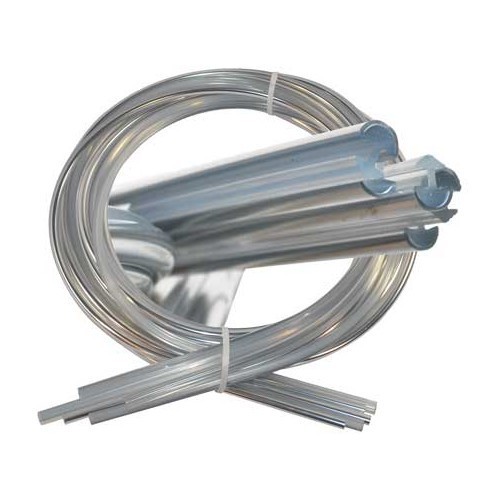 Questo kit include le modanature in alluminio per le guarnizioni dei vetri Deluxe, lunotto posteriore e le 2 mascherine laterali.