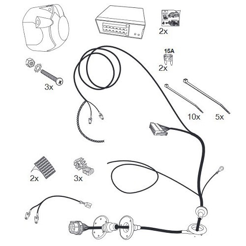 tasse incl.Mecatechnic ha selezionato per voi un cablaggio per gancio di traino specifico con una presa 7 poli. Questo vi permette di collegare il rimorchio, portabici e/o la roulotte al vostro veicolo rispettando le raccomandazioni del costruttore.