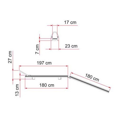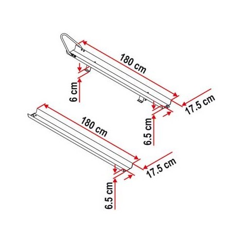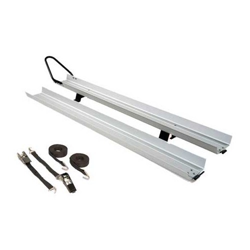 È composto da un binario portamoto fissato al pavimento di una stiva, di un rimorchio o di un vassoio e da una rampa di accesso fissata a filo del binario. Ciascuna di esse è lunga 180 cm con una larghezza massima delle ruote di 14 cm. Larghezza esterna della guida: 17,5 cm.