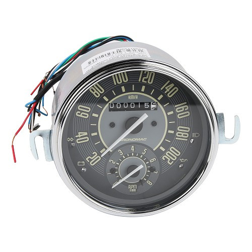 tasse incl.Questo magnifico tachimetro CRONOMAC incorpora un contagiri sullo stesso quadrante e si adatta a per VW Beetle 1200/1300 e Split Combi con un diametro di 110 mm aggiungerà il tocco finale al vostro Cox o Combi (tedesco o brasiliano). Con indicatori...