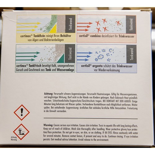 Lotto di 3 prodotti per la pulizia dei serbatoi dell'acqua.