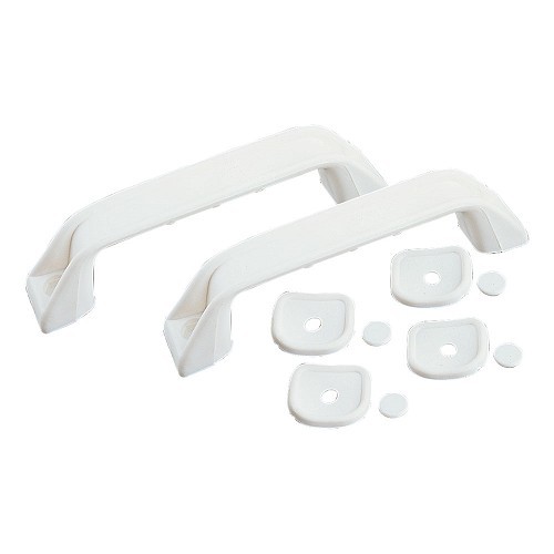 Ideali per manovrare una roulotte o per appoggiarsi a una scala esterna per camper, le 2 maniglie bianche sono proprio quello che ci vuole.