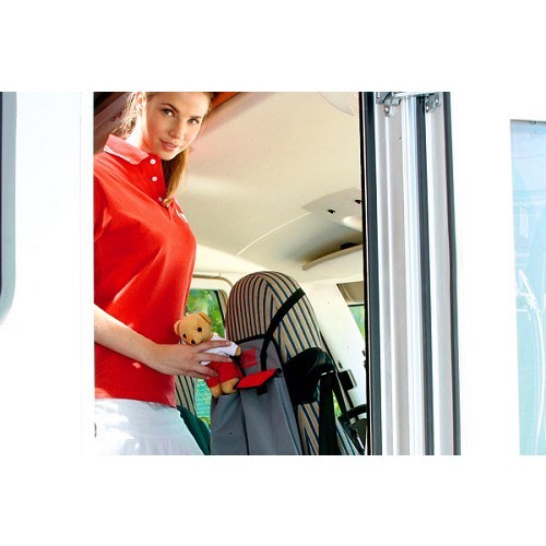 In un camper o in un furgone trasformato, lo stoccaggio è essenziale. L'organizzatore per sedili SEAT FIAMMA PACK ORGANIZER è un organizzatore multiuso che può essere posizionato sul retro del sedile del passeggero o del conducente. Con 4 grandi tasche, offre un ampio spazio per guide, mappe, pacchetti di biscotti, ecc. È realizzato in materiale impermeabile e facile da pulire. Quando è piegato, occupa pochissimo spazio.