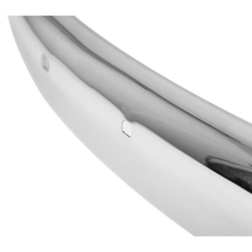 Questo paraurti cromato per Maggiolino è dotato di un foro per i paraurti, in caso di montaggio senza paraurti, inserire 2 viti cromate.