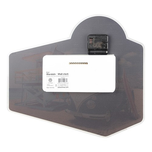 Orologio in plexiglas con sfondo di una VW Combi Split blu sulle spiagge della Florida o della California.