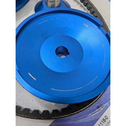 tasse incl.Eccellente set di pulegge dell'alternatore e dell'albero motore in alluminio anodizzato blu . Per il montaggio, si consiglia di utilizzare bussole esagonali per evitare di segnare il dado durante il serraggio. Si consiglia inoltre di limare le due vi...
