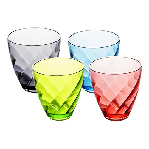 Elegante e colorato, questo set di 4 bicchieri equipaggerà l'attrezzatura da cucina del tuo camper, della tua roulotte. Pratici durante i vostri soggiorni, sono impilabili per ottimizzare il volume da essi occupato. nei tuoi armadi. In 4 colori diversi, rosso, verde lime, grigio, blu, adorneranno la tua tavola.