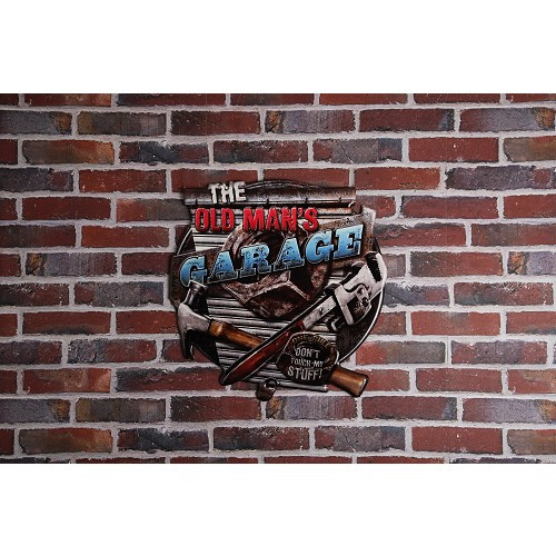 THE OLD MAN'S GARAGEplacca decorativa da parete in metallo a rilievo